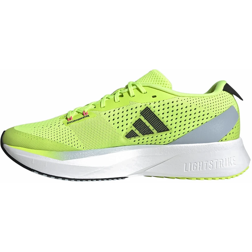 La chaussure Adizero SL pèse environ 243 grammes, ce qui la rend très légère et idéale pour les coureurs qui recherchent une chaussure de course performante et rapide. Elle est également dotée d’un système de laçage traditionnel et d’un contrefort de talon pour un ajustement personnalisé et un soutien supplémentaire.