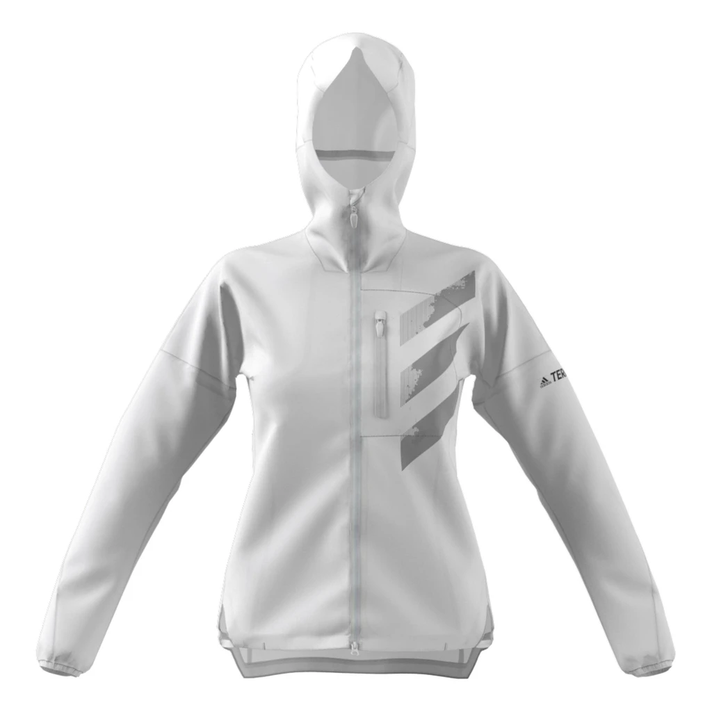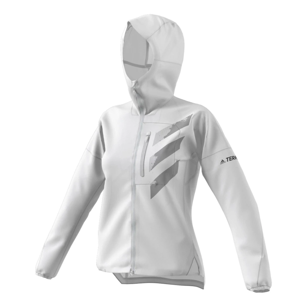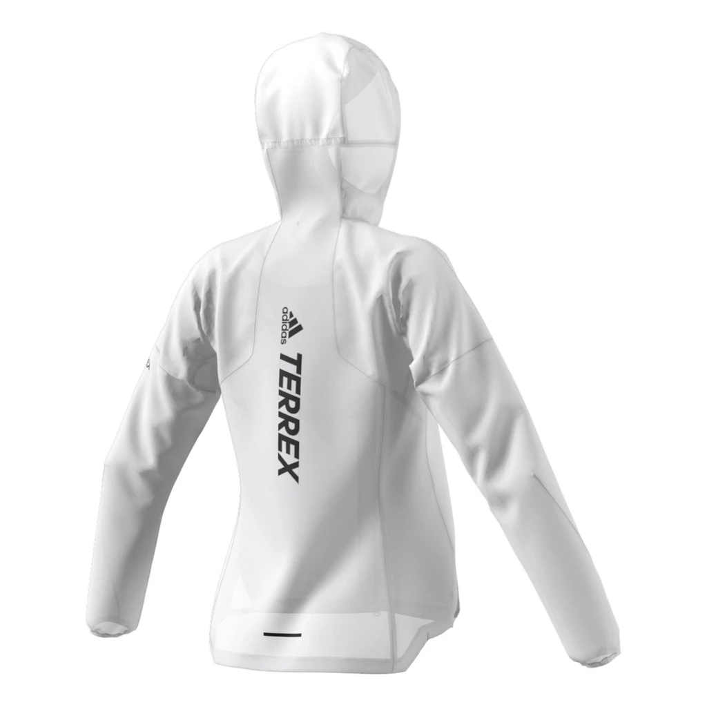 La veste à capuche pour femme adidas Agravic Rain Jacket, ici déclinée en blanc, est conçu pour braver les intempéries pendant vos trails.