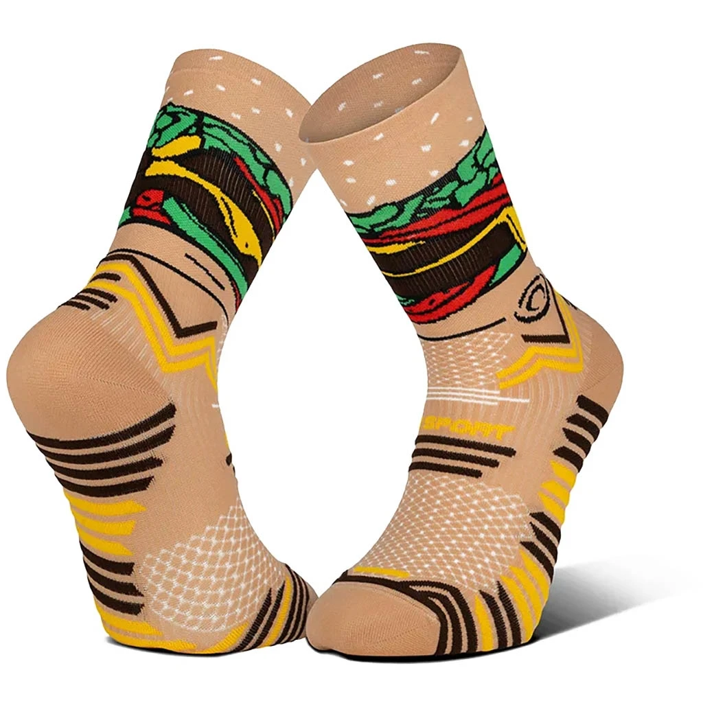 La chaussette de trail Nutrisocks Burger – Collector de BV SPORT issu de la première collection collector Nutrisocks vous emmène au Fast Food pour une expérience gourmande et technique pendant vos trails !