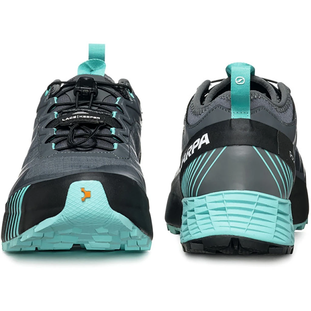 La chaussure Ribelle Run GTX est construite pour envelopper le pied avec prĂ©cision grâce Ă son volume rĂ©duit. Le talon est stabilisĂ© par une bande EVA qui englobe complètement la chaussure. Concernant sa tige, l’empeigne est fabriquĂ©e selon la mĂ©thode Sock-Fit LW de SCARPA, avec un chausson en maille lĂ©gère et super respirante. Des renforts thermosoudĂ©s garantissent un enveloppement prĂ©cis et rĂ©gulier autour du pied tout en offrant un confort et une flexibilitĂ© exceptionnels au niveau du col de la cheville, de la languette et de l’avant-pied.