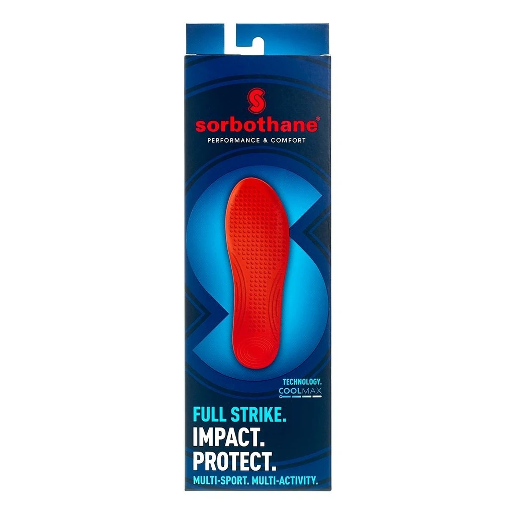 La semelle Sorbothane Full Strike offre un amorti intĂ©gral et une protection complète quelle que soit l’intensitĂ© de l’impact. En cela, la semelle Full Strike est idĂ©ale pour les activitĂ©s oĂą le pied est sujet aux impacts et nĂ©cessite un dĂ©roulement complet, dans un axe droit : course Ă pied, marche, football, rugby, ski, patin, golf, etc.
