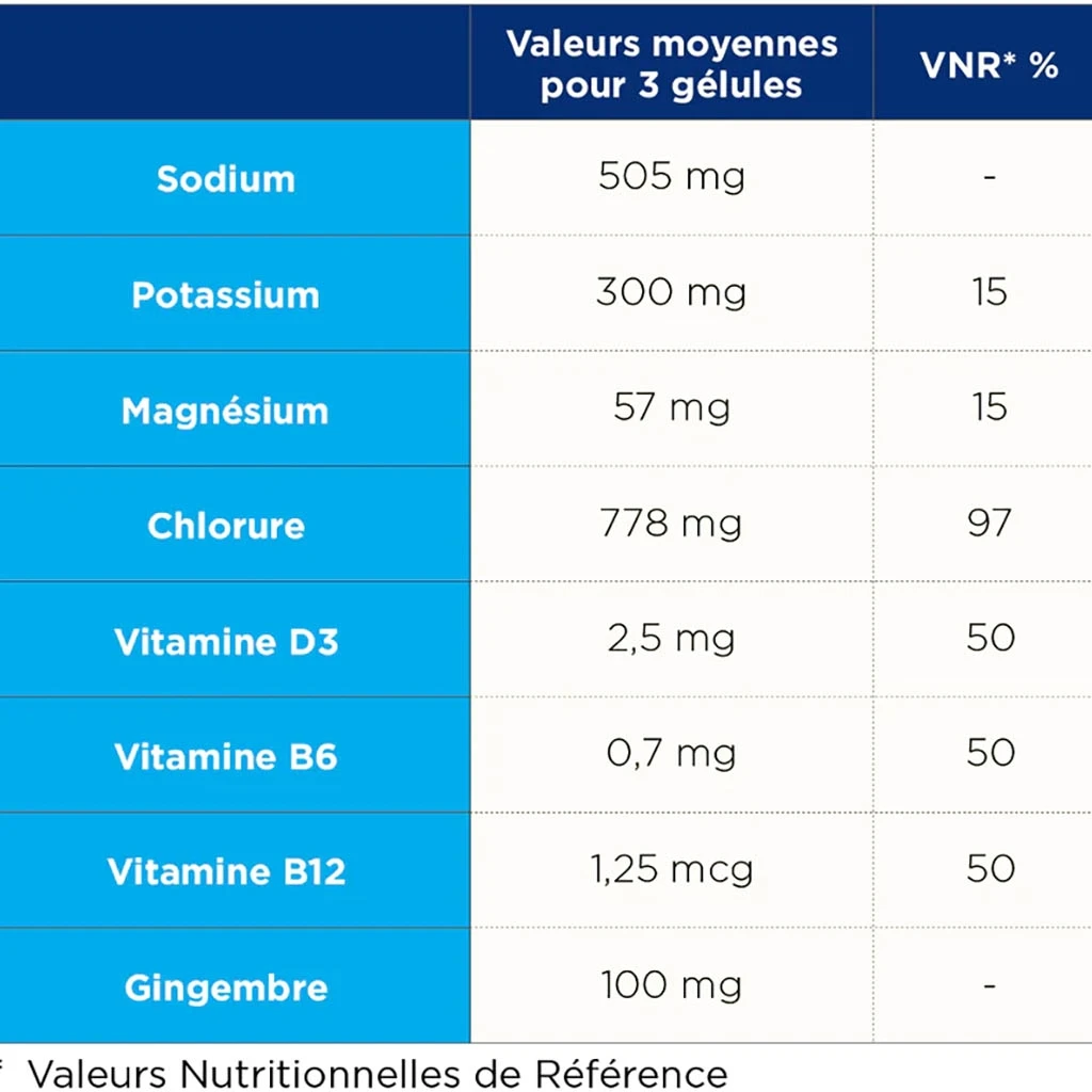 Les capsules de sel – Flacon 60 par TA ENERGY vous fournissent de manière la plus efficace des électrolytes, de la vitamine D3, B6 & B12. Ces éléments essentiels et nécessaires pour votre corps los de la production d’un effort vous permettent de contrer la déshydratation. Sans caféine, une capsule possède 170mg de sodium, qui est le principal électrolyte perdu dans la sueur et du gingembre pour lutter contre les maux d’estomac.